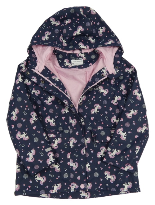 Tmavomodrá nepromokavá bunda s jednorožcami a kapucňou C&A