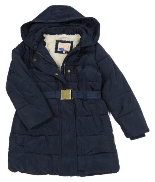 Tmavomodrý šušťákový zimný kabát s opaskom a kapucňou M&S