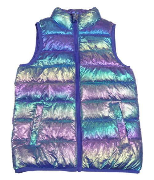 Fialovo-ružová šušťáková metalická prešívaná zateplená vesta s logom Mountain Warehouse