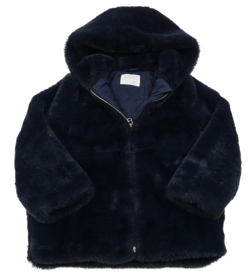 Tmavomodrá kožušinová zateplená bunda s kapucňou Zara