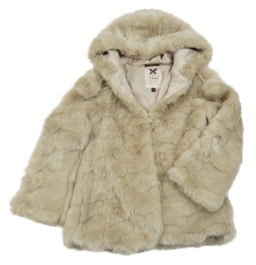 Béžový kožušinový podšitý kabát s bambulemi a kapucňou M&S