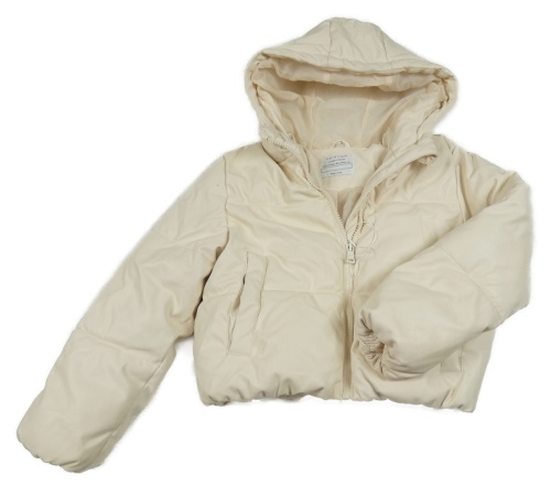 Smotanová prešívaná koženková zimná crop bunda s kapucňou PRIMARK