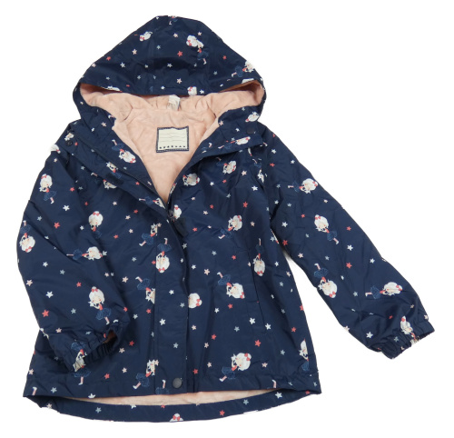 Tmavomodrá šušťáková lehce zateplená bunda s dievčatkom a kapucňou Topolino
