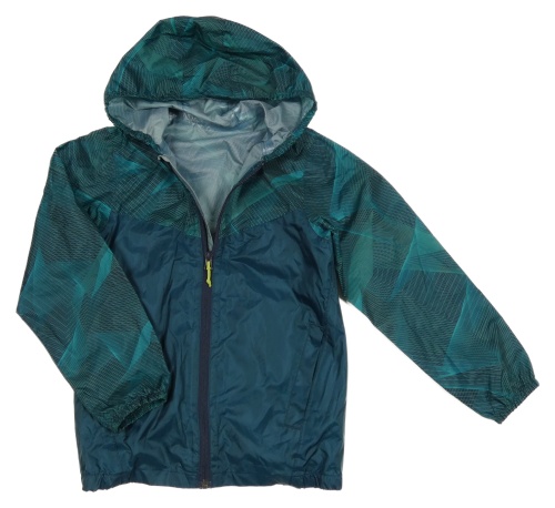 • Tmavopetrolejová šušťáková nepromokavá funkčná bunda so vzorom a kapucňou Quechua