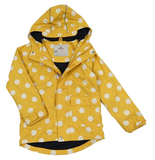 • Horčicová bodkovaná á nepromokavá jarná bunda s kapucňou Topolino