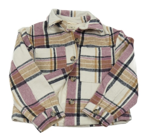 Bielo-starofialovo-hnedo-čierna kockovaná vlnená podšitá košeľová bunda F&F