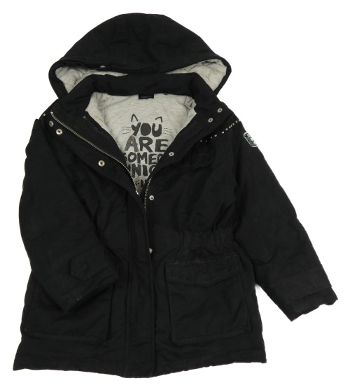 Čierna šušťáková zimná parka so cvokmi a kapucňou IKKS