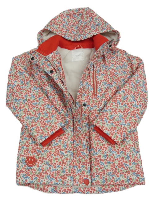 Bielo-červeno-modrá kvetovaná šušťáková zateplená bunda s kapucňou Next