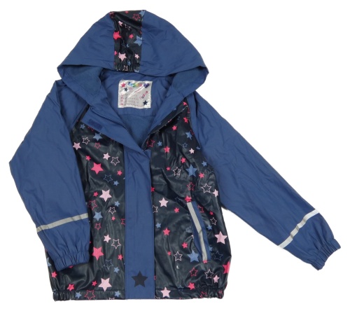 Tmavomodrá nepromokavá jarná bunda s hviezdičkami a kapucňou lupilu