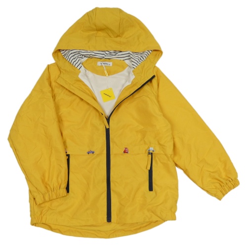 Nové - Žltá šušťáková jarná bunda s autami a kapucňou Colunboy