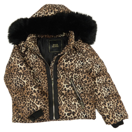 Hnedo-čierna vzorovaná šušťáková zimná bunda s kapucňou River Island