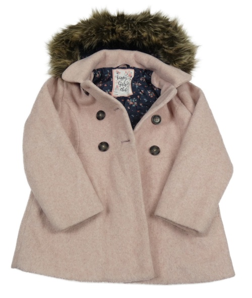 Svetloružový podšitý flaušový kabát s kapucňou s kožešinou C&A