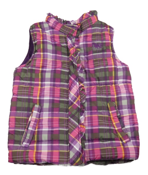 Fialovo-růžovo-khaki kockovaná šušťáková zateplená vesta s jednorožcom Topolino