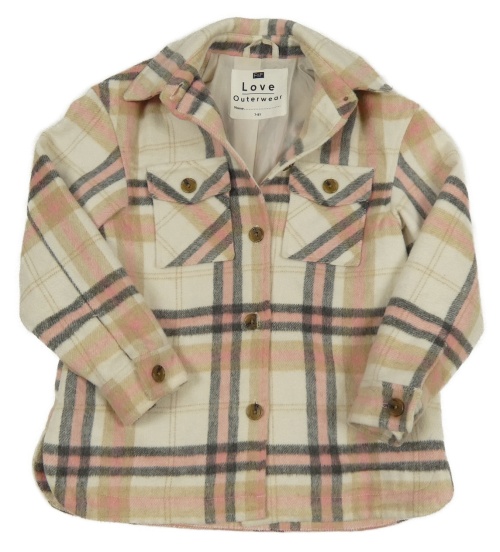 Krémovo-ružovo-sivá kockovaná vlnená podšitá košeľová bunda F&F