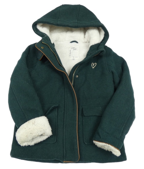 Tmavozelený vlnený zateplený kabát s kapucňou Vertbaudet
