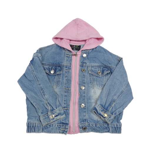 Modro-ružová riflovo/tepláková bunda s kapucňou