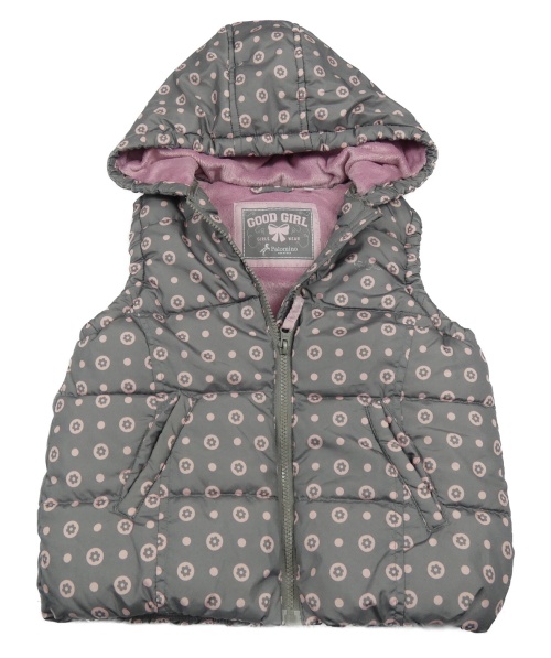Sivá kvetinová šušťáková zateplená vesta s kapucňou C&A
