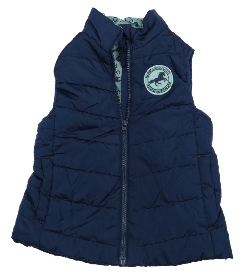 • Tmavomodrá prešívaná šušťáková funkčná jezdecká zateplená vesta s nášivkou s koníkem crane