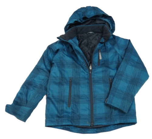 • Petrolejovo-čierna kockovaná šušťáková prechodná bunda s odopínacíá kapucňou KIDS