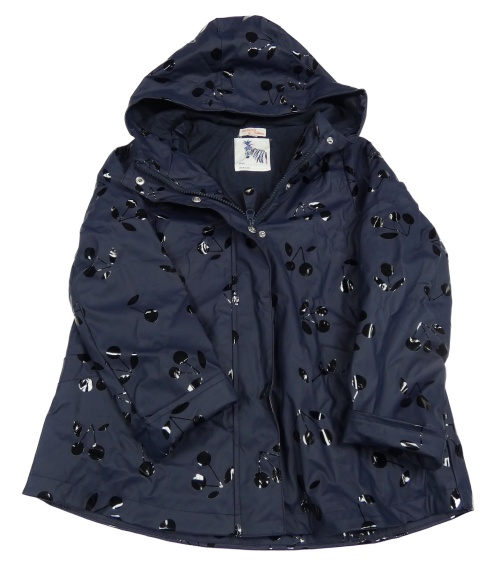 Tmavomodrá nepromokavá jarná bunda s třešněmi a kapucňou