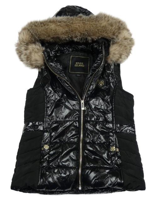 Čierna šušťáková lesklá zateplená vesta s kapucňou River Island