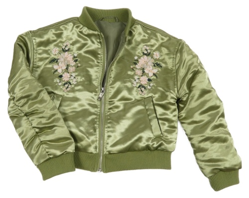 Olivový saténový zateplený crop bomber s kvietkami Nutmeg