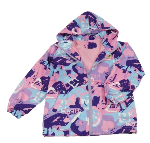 Ružovo-fialovo-svetlomodrá vzorovaná šušťáková zateplená bunda s kapucňou