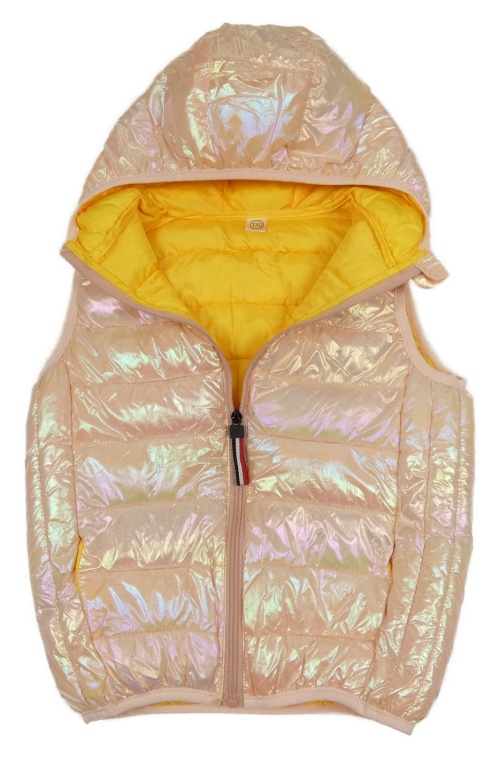 Svetloružová metalická šušťáková zateplená vesta s kapucňou