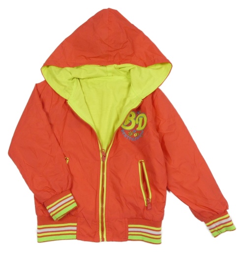Korálová šušťáková obojstranná bunda s nápisom a kapucňou
