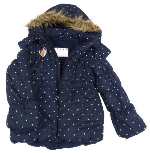 Tmavomodro-ružová bodkovaná á šušťáková zimná bunda s koníky a kapucňou s kožešinou