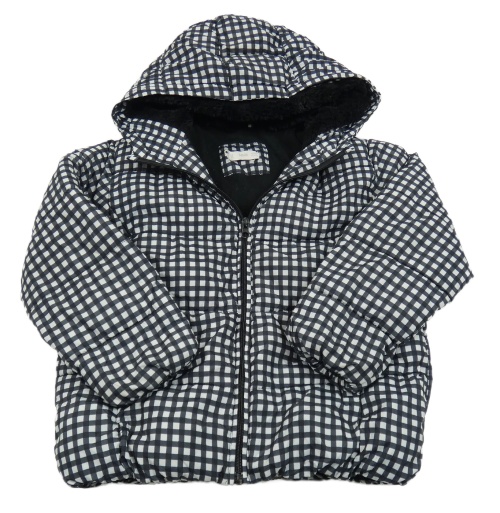 Čierno-biela kockovaná šušťáková prešívaná zimná bunda s kapucňou Mango