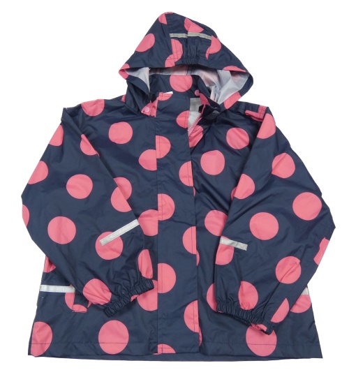 Tmavomodro-ružová bodkovaná á šušťáková vetrovka s kapucňou