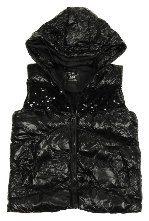 Čierna šušťáková zateplená vesta s flitrami a kapucňou Pep&Co