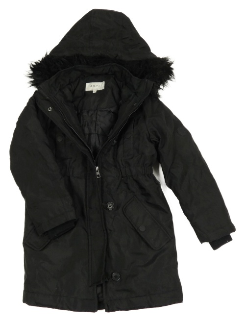 Čierny šušťákový zimný kabát s kožešinou ADPT