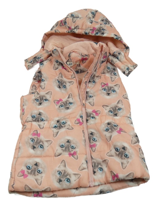Svetloružová šušťáková zateplená vesta s mačkami a kapucňou H&M