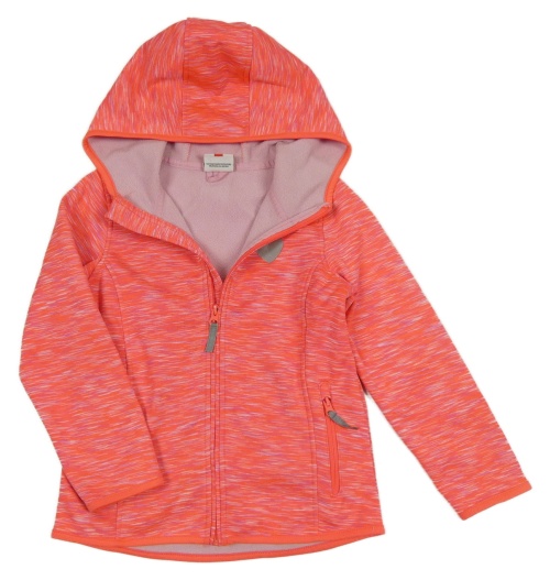• Neónově korálová melírovaná softshellová bunda so srdiečkom a kapucňou Topolino