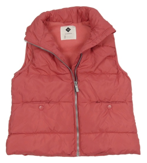 Jahodová prešívaná šušťáková zateplená vesta s ukrývací kapucňou TEX