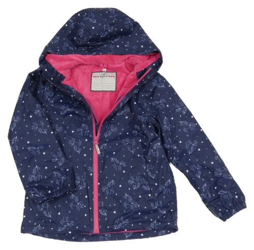Tmavomodrá šušťáková jarná bunda s jednorožcami a kapucňou Topolino