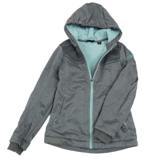 Sivá melírovaná softshellová bunda s nášivkou a kapucňou alive