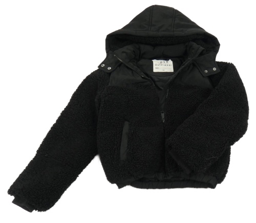 Čierna huňatá zateplená bunda s šusťákem a kapucňou F&F