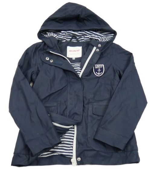Tmavomodrá nepromokavá jarná bunda s nášivkou a kapucňou POCOPIANO