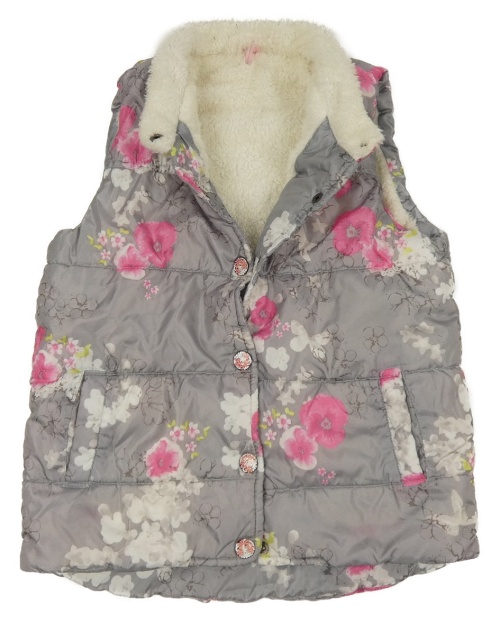 Sivá šušťáková prešívaná zateplená kvetovaná vesta
