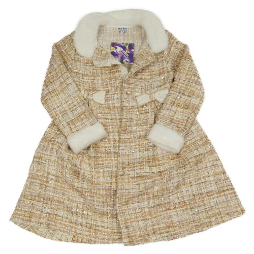 Nové - hnedo-smetanovo-starorůžovo-zlatý kabát s mašľami a flitrami a volánikom a kožešinou BLUE BERi