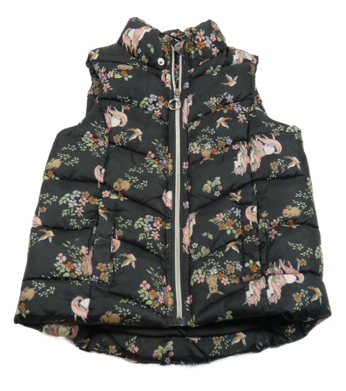Čierna kvetovaná šušťáková zateplená vesta so zvířaty H&M