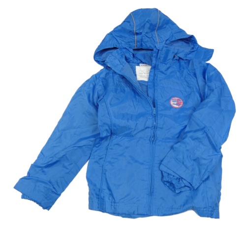 Modrá šušťáková jarná bunda s nášivkou a kapucňou X-mail