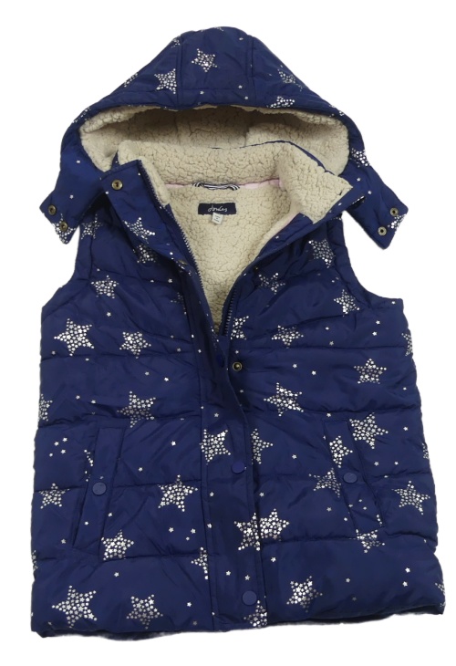 Tmavomodrá šušťáková zateplená vesta s hviezdami a kapucňou Joules
