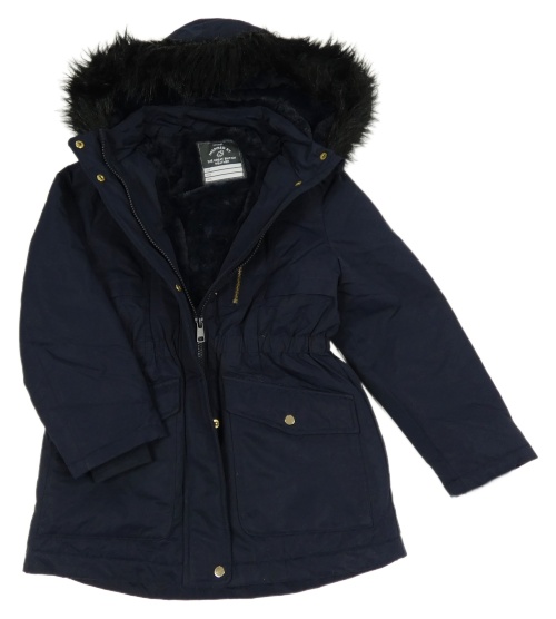Tmavomodrá šušťáková zimná bunda s kapucňou s kožešinou George