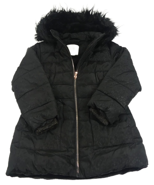 Čierna vzorovaná šušťáková zimná parka s kožešinou a kapucňou Matalan
