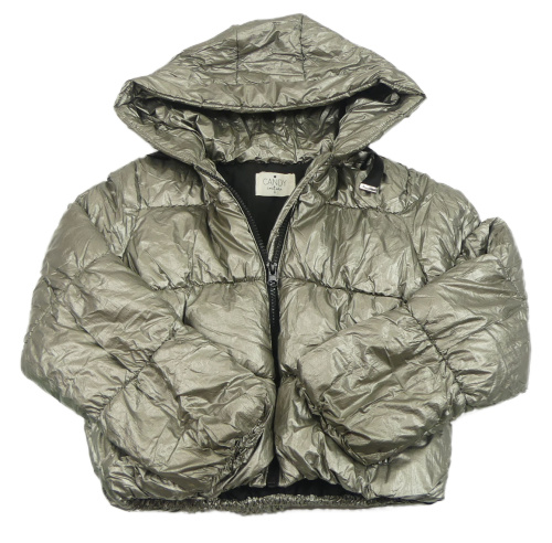 Stříbřitě sivá šušťáková zimná bunda s kapucňou Candy