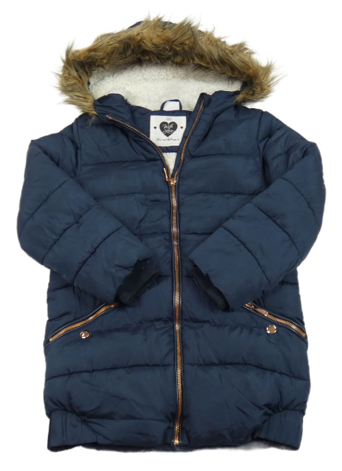Tmavomodrý šušťákový zimná kabát a kapucňou F&F